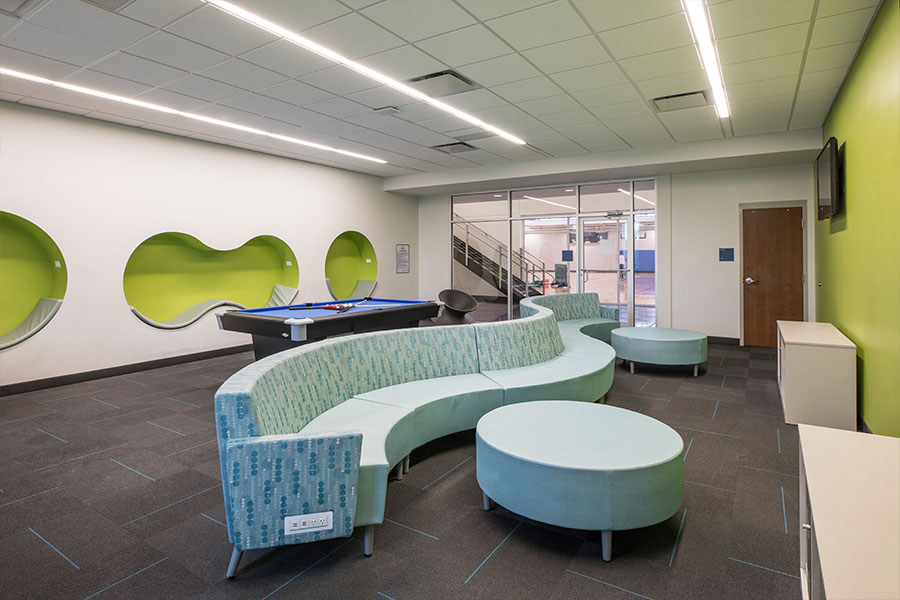 The park which is divided into two unequal areas by a city street is one of the site’s most challenging conditions. A covered pedestrian bridge was designed as an active and passive strategy to take advantage of this potential issue. The bridge extends from the recreational building and provides a safe passage above a busy city avenue. It also doubles as a city gateway that defines the northern boundary of the city.