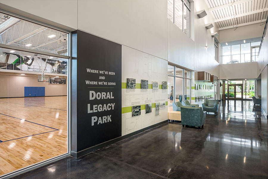 Doral Legacy Park is an 18-acre recreational park and two-story 38,280 S.F. LEED Silver recreation building that will provide the City of Doral with a vibrant social and active space that fosters community development while respecting the boundaries of the residential communities that surround the park.