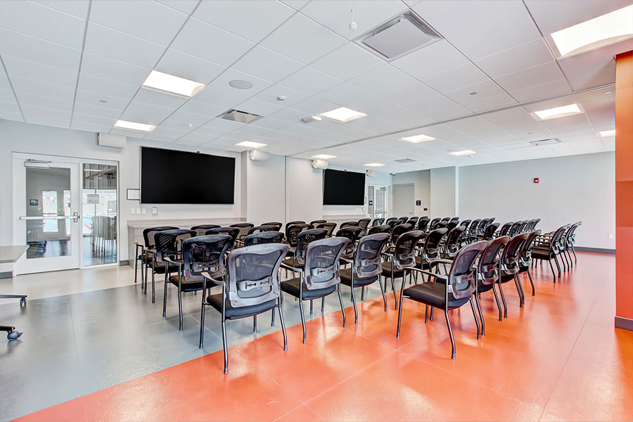 The project includes meeting spaces for teams and coaches as well as a combination of 2,500 sf aquatic and dryland fitness spaces for athletic cross training that provides a full programming opportunity for athletes. There is also an outdoor splashpad has decorative play structures for children.