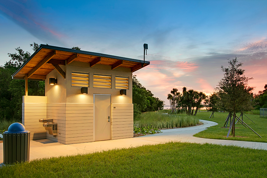 Through community input a plan was developed aimed at connecting the two portions of the park and providing patrons with more passive recreation opportunities that take advantage of the park’s waterfront location. The design replaced the existing baseball field with a new multipurpose field with a covered pavilion that overlooks the water and newly added pedestrian bridge. Benches and Covered Picnic Tables were added along the waterfront to take full advantage of the parks unique location. Other park amenities include a Kayak launch, Playground, Fishing Pier, Basketball Court, Tennis Courts and Large Dog Park.