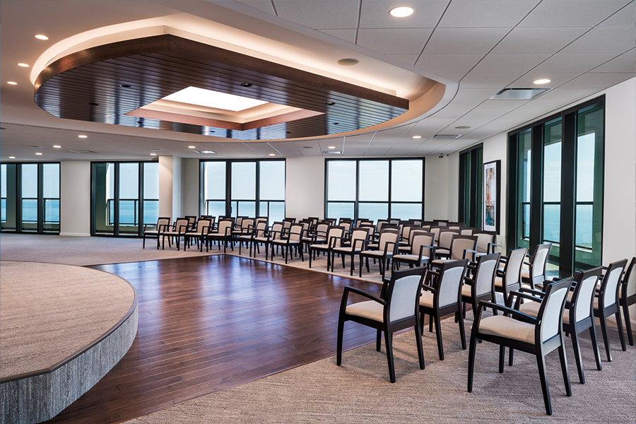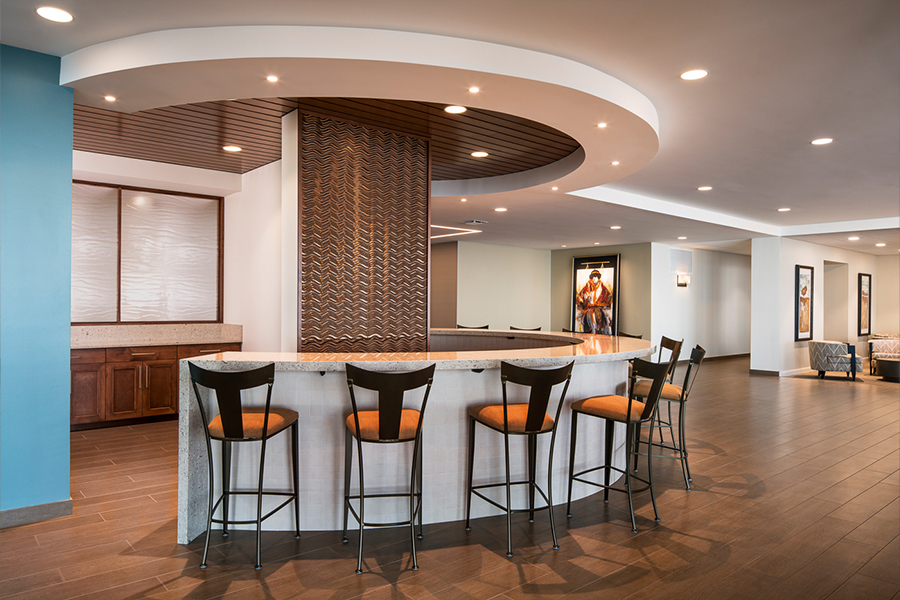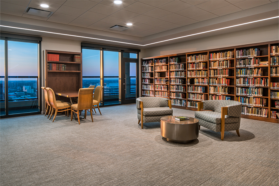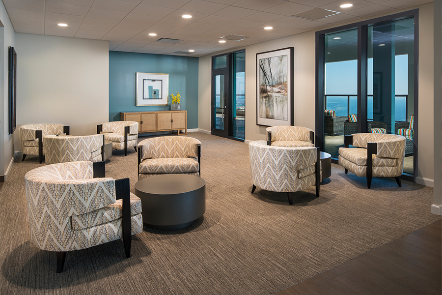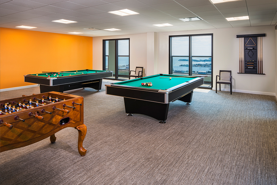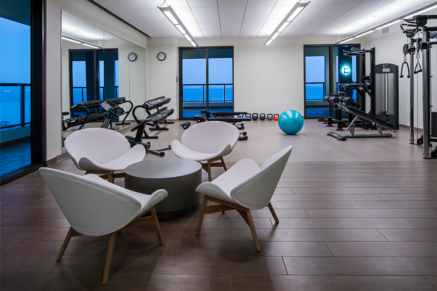 Along with the exterior work, WJA also provided interior design services for the towers communal areas uniquely located on the 28th floor. The community library, gym, ballroom, bar, sauna, game-room and event space all received a complete remodel – making these once underutilized spaces a significant part of the condo’s appeal.