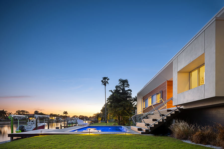The Broadwater House is named after the neighborhood in which it’s located along the southwest side of St. Petersburg, Florida. The project is an example of entrepreneur ambition, with WJ serving as the developer, architect, and contractor to complete the vision. The project tests the thesis that well designed architecture and intelligent construction will appraise at significantly higher value than the cost of the project development. The contemporary design challenges the status quo and stands out to both cars and boats passing by.