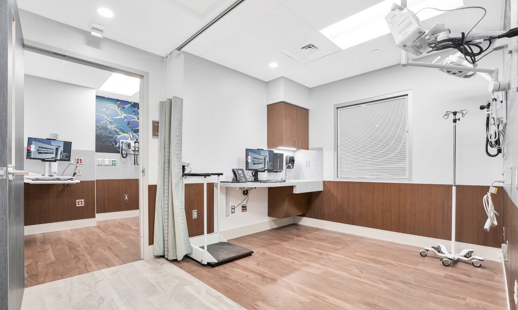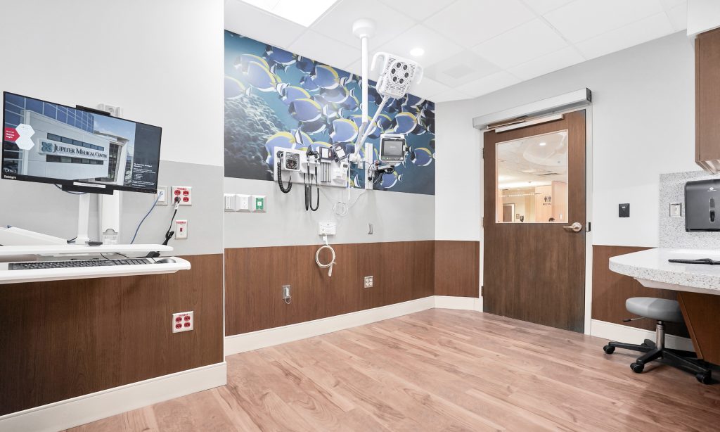 The Petrocelli Family Emergency Center is an addition and renovation to a 5,600 sf space on the first floor of Jupiter Medical Center. This addition provided space for eight new semi-private fast track bays, two new triage rooms, office space, nurse station, Founders’ Lounge, clean holding, soiled utility, and associated support spaces for the existing Emergency Department.