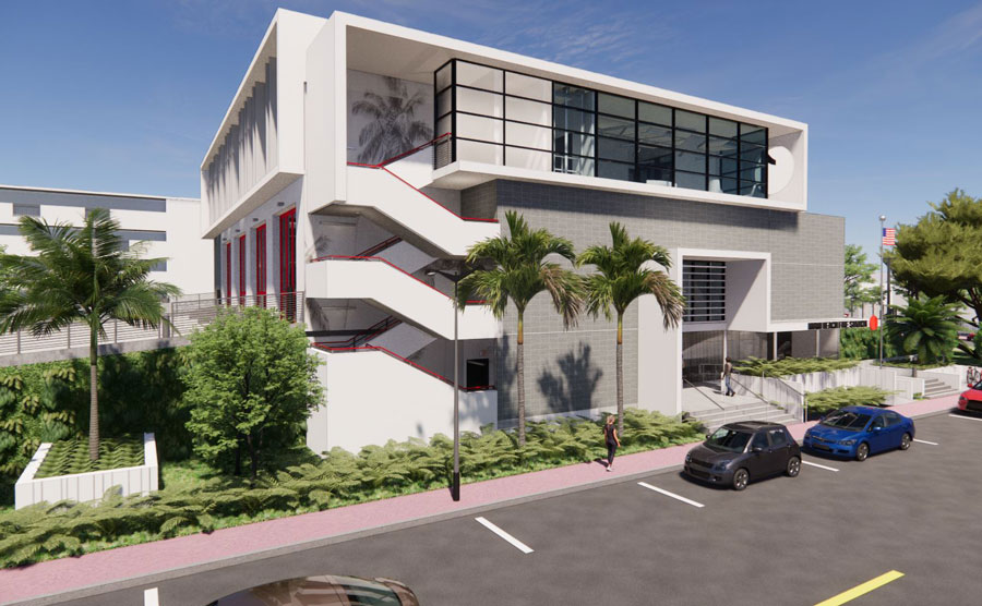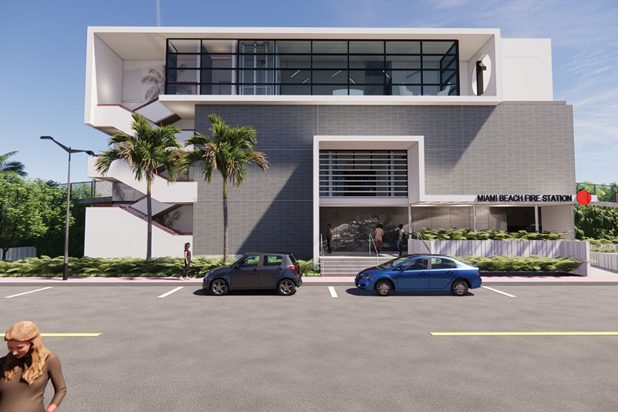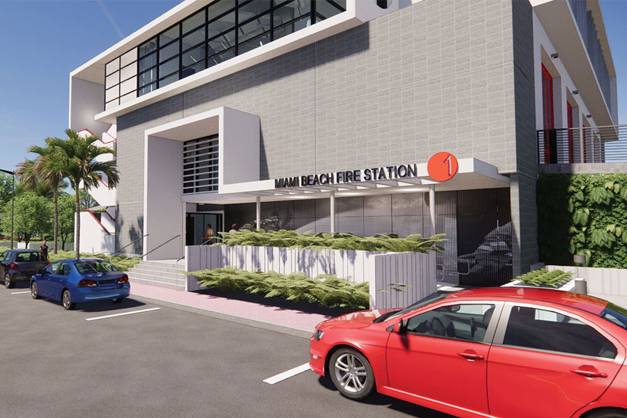 Currently in design, Fire Station No. 1 is a hurricane hardened 911 emergency operations center located 6 blocks from the Atlantic Ocean in the City of Miami Beach, FL. It houses 4 drive-through apparatus bays, and 14 dorms totaling approximately 25,000 sf within 3 stories.