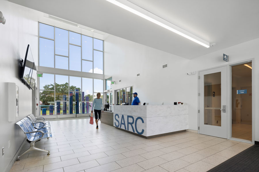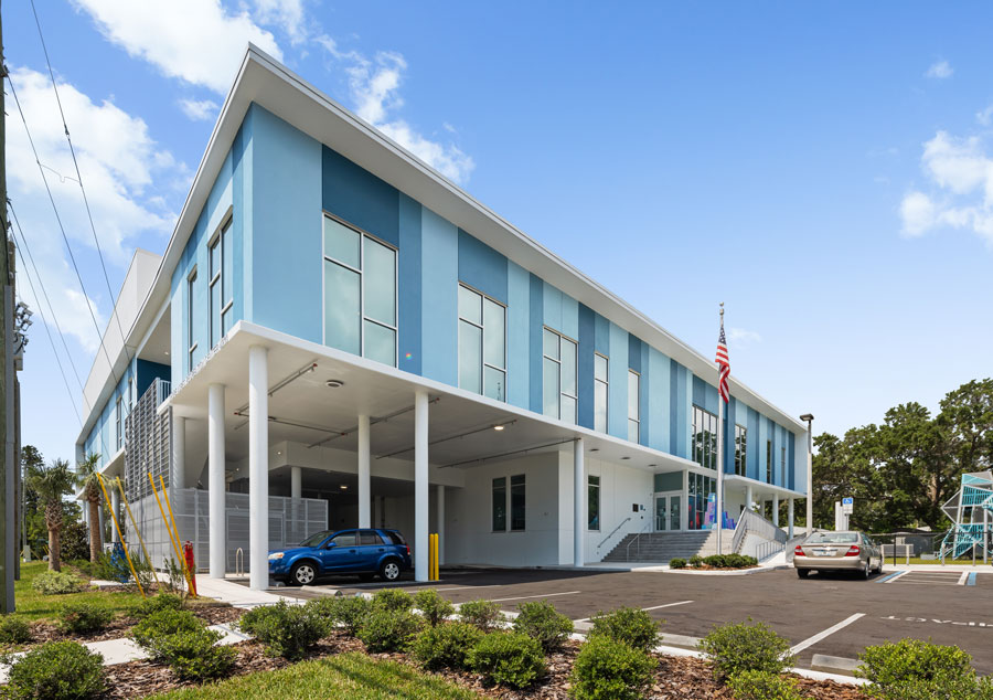The City of St. Petersburg and the design team took a multifaceted approach to designing this as a new LEED Gold Building for the Shore Acres community. In doing so, it achieved the highest number of points (18) available in the LEED rating system for energy performance. Features include the installation of photovoltaic panels as a renewable energy source, sustainable water consumption and irrigation, low-e coating to reduce heat island effect as well as reflective PVC roofing materials and landscape surfacing.
