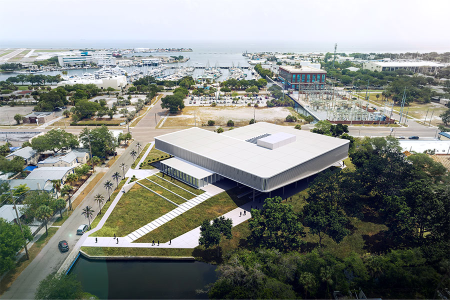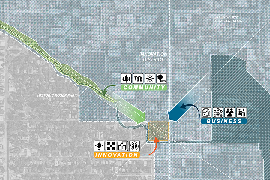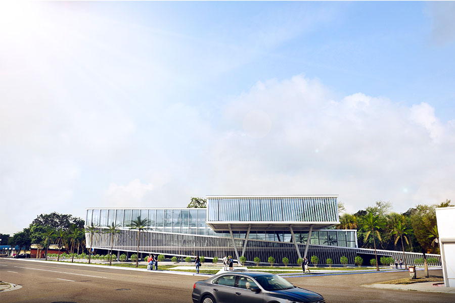 A concept design for the Tampa Innovation Center that would be located on the southwest corner of 11th Ave S and 4 St S in St Petersburg, FL. The design consists of an approximately 45,000 square feet, two story state-of-the-art business incubator. The facility includes approximately 30,000 sq. ft. of client space, plus co-working/collaboration space, offices, and a conference/community room.